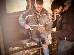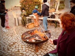 Am 22. November feierten wir einen stimmungsvollen Adventsnachmittag in der Scala. Von 13 bis 18 Uhr konnten Freunde, Nachbarn, Familien und viele weitere Gäste hereinschauen und die adventliche Atmosphäre genießen. Schon draußen war einiges geboten: Die Ranger bereiteten Schupfnudeln mit Sauerkraut zu, am Feuer wurden Marshmallows geröstet, und viele Kinder zogen eifrig selbst Kerzen.