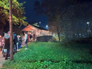 Am 31. Oktober wird ja bekanntlich Halloween gefeiert – wir als Scala wollten eine Alternative bieten, um von der Liebe Gottes zu erzählen, anstatt Grusel zu verbreiten. Und das war ein voller Erfolg. Es kamen ungefähr 140 Leute zusammen, von denen viele Rangerkinder waren, einige Gemeindekinder und auch sehr viele Freunde der Kinder. Wir trafen uns vor der Scala, es wurden Fackeln verteilt und dann ging es los mit unserer kleinen Wanderung durch das Mühlenviertel. Auf dem Weg begleitete uns Martin Luther, gespielt von Felix Klassen, der uns an mehreren Stationen aus seinem Leben berichtete.
